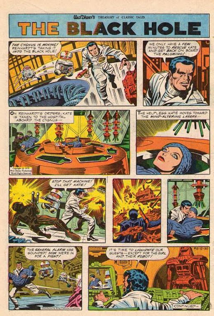 Even crazier, Disney hired Jack Kirby to adapt the film as part of their “Walt Disney’s Treasury of Classic Tales” newspaper strip, along with takes on The Watcher in the Woods, Condorman and The Last Flight of Noah’s Ark. The art for these is stunning and well worth hunting down.