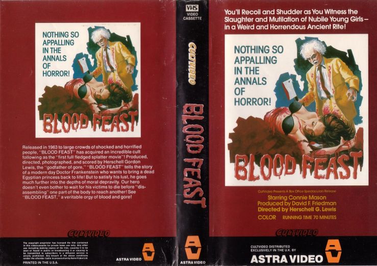 6. Blood Feast: Not to be outdone by A Bay of Blood being nearly ten years old, this Herschell Gordon Lewis movie was around twenty years old when the video nasty scandal occurred. I guess there’s no statute of limitations when it comes to “a veritable orgy of blood and gore.”