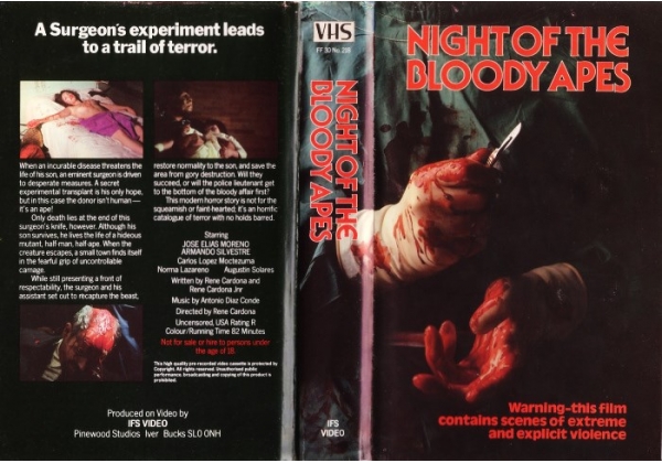 33. Night of the Bloody Apes: Made in 1969, René Cardona remade his earlier effort Doctor of Doom and turned it into a real party, filled with nudity, medical footage, women wrestling, a murderous ape — as one would hope from the title — and lots of gore. This also passed — with some cuts — to play in UK cinemas, which made it odd that it was prosecuted.