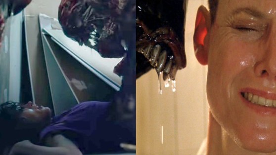 CORRECTION: The face to face xenomorph and Ripley moment is actually from 1992’s Alien 3. Thanks to Aaron Click from The Horror Drive-In community on Facebook for noticing this.