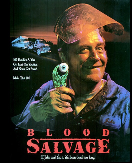 Blood Salvage—the film’s original title was “Mad Jake” before the more exploitive change for U.S. shores, and retained that title in some overseas markets, which released the film to home video, uncut—was the only film Tucker Johnson wrote and directed. In 1994 he wrote a soft core porn flick for Cinemax, Secret Games 3, and then vanished. . . . It’s said that Johnson worked in the adult film industry prior to making a “commercial move” with Blood Salvage. Who knows?
