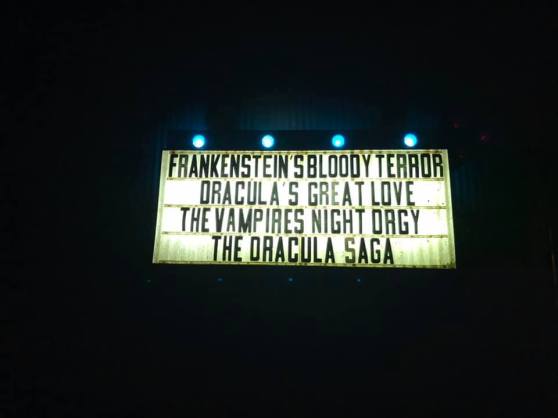 There’s no better place to watch the movies that we love than the drive-in. And twice a year, we travel to the Riverside Drive-In in Vandergrift, PA to see eight movies in two days. This September, we were entertained by a veritable cuerno de la abundancia of werewolves, vampires and zombies Spanish style.