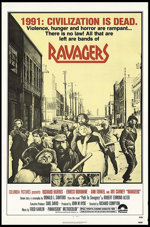 As with Planet of the Apes (based on Pierre Boulle’s 1964 Monkey Planet), The Omega Man (Richard Matheson’s 1954 I Am Legend), Soylent Green (Harry Harrison’s 1966 Make Room! Make Room!), and Damnation Alley (Roger Zelazny’s 1969 novel), Ravagers was a long-in-development film based on another best-selling, ‘60s science fiction novel: 1966’s Path to Savagery by Robert Edmond Alter.