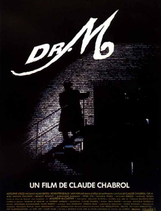 When the centenary year of Lang’s birthday came around, Chabrol decided to pay tribute to his cinematic idol with a futurist-Metropolis spin to Fritz Lang’s 1922 silent, two-part mystery-masterpiece, Dr. Mabuse: The Great Gambler and Inferno*. Most likely—with a cast featuring Jennifer Beals of Flashdance fame (as Sonja Vogler) and Andrew McCarthy (as an “assassin”; his appearance, so brief, it doesn’t warrant his top-billing)—this admittedly low-budget yet engrossing film (titled Dr. M throughout Europe) was criminally slapped with a hackneyed, U.S. teen-slasher title due to its American-based stars: Club Extinction, for its domestic home video bow.