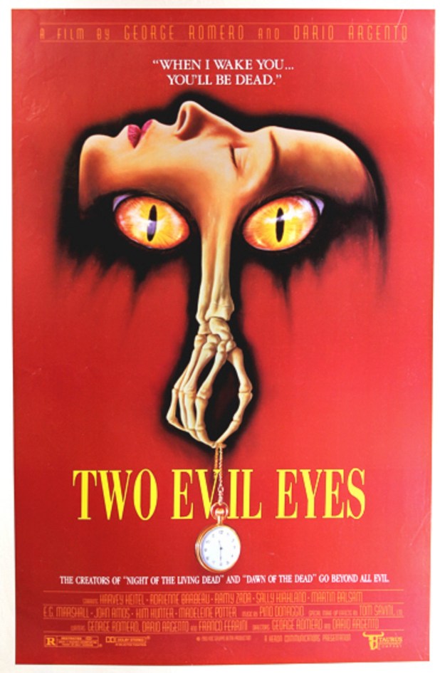 Two Evil Eyes is a very personal movie to me. It was filmed when I was 18, in my hometown of Pittsburgh, by two of the greatest minds to ever work in horror, George Romero and Dario Argento, who also brought along Luigi Cozzi and Tom Savini to aid and abet. It’s an anthology film inspired by Edgar Allan Poe, with both directors using their own unique vision to make one disjointed but interesting film. If you were around town at the time of its filming, Savini was often bringing the props to conventions, so seeing the incredibly gory “Pit and the Pendulum” girl up close was a shocking event.