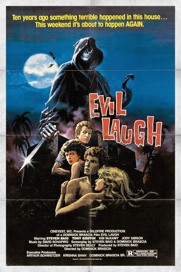 At the tail end of the slasher boom, hell, maybe even a few years past its expiration date, Steven Baio — yes, the brother of Scott, co-produced and starred in Evil Laugh. We all have dreams. Dreams that Scott Aaron Stine, in The Gorehound’s Guide to Splatter Films of the 1980’s, would crush by saying that “There is nothing, I repeat, nothing worthwhile or even remotely worthwhile or even remotely memorable about this waste of celluloid.”