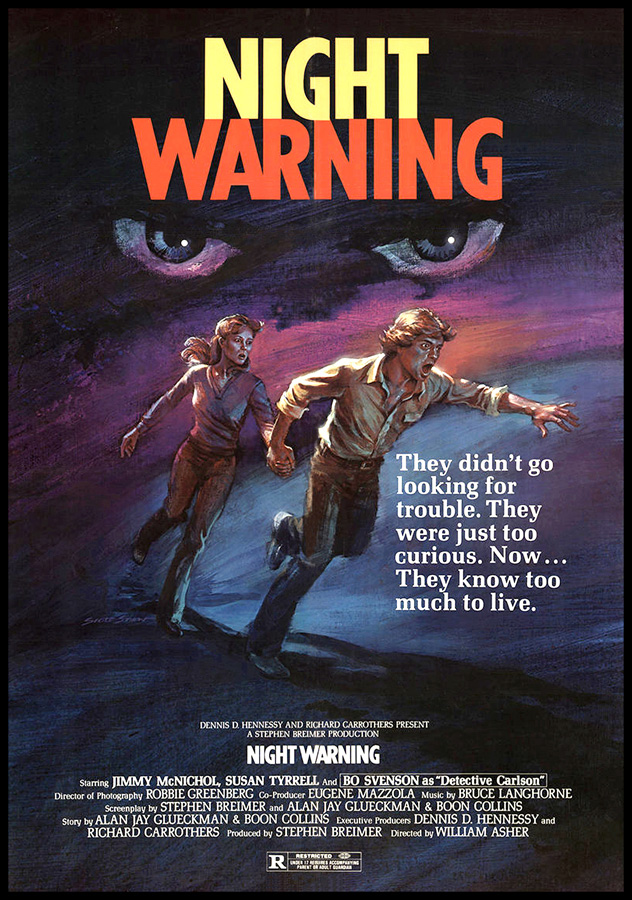 Night Warning (a.k.a. Butcher, Baker, Nightmare Maker): The director of Beach Party made an impressive slasher with a jaw-dropping opening stunt, oedipal insanity, surprise police criticism and the progressive inclusion of a brave, likeable gay character. Susan Tyrell is a grand dame psycho here and almost matched by Bo Svenson!