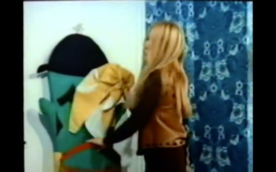 Peggy wears the type of outfits — and lives in the type of bonkers apartment, complete with a fabric Frankenstein’s monster hamper — that only exist in 1970’s giallo. Let’s face it. Our girl has a giant egg in the middle of her flat.