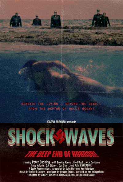 Right from the very start with it’s documentary style opening, 1977’s Shock Waves draws you into it’s story of an elite Nazi Deathcorp that was unleashed at the end of World War 2 that were never captured or killed. Flash forward to the 1970’s where a group of tourists end up shipwrecked on a seemingly deserted island only to discover the former Nazi Commander (Peter Cushing) of that Deathcorp and the secret he’s been hiding all these years. The Nazi Deathcorp are still one of the best villians, visually and with their brutality, as they stalk the tourists on land and from underwater! Violent, but not gory, fast paced and an almost non-stop sense of dread power this “PG” rated film into one of my all time favorites.