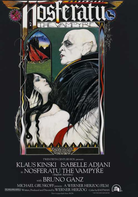 This second of five Herzog-Kinski romps is an impressionist-stylized remake of F.W Murnau’s unauthorized, 1922 black-and-white silent adaptation of Bram Stoker’s Dracula. But how did Herzog manage to make this film without the same copyright issues that plagued Murnau’s version? Simple. The day the copyright expired on Stoker’s novel and entered the public domain, Herzog began his adaptation.