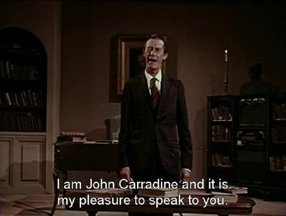 Carradine goes one better in this film by providing the introduction. Seriously, you don’t know how many drinks I would have poured out for this man.
