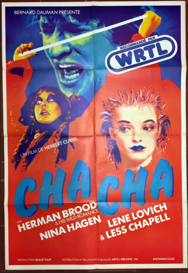 Cha Cha served as a multi-media film and soundtrack collaboration by the then romantically-linked couple of Dutch rocker Herman Brood (1979 U.K./U.S. Top 40 new wave hit with “Saturday Night” by his band Wild Romance) and East German musician-actress Nina Hagen (1982 new wave hit with “Smack Jack”), along with Detroit, Michigan-born and London-transplanted Lene Lovich (1979 U.K./U.S. new wave hits “Lucky Number” and “New Toy”).