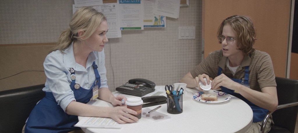 Aiden (Baker Chase Powell), a socially-inept thrift store clerk, wants to find true love (“true love” is a girl who likes jigsaw puzzles), but his courage-defying insecurities lead to social media ghosting of any connections he makes on dating apps (and his “agoraphobic-dating” a dumpster-dived mannequin). Also looking for — and fearful of love — is his co-worker, Elaine (Ashley Jones), whose own generosity with advice and to-a-fault kindness crossed with shyness perpetuates her own loneliness. And Aiden’s inability to pick up on another’s social cues makes him oblivious to Elaine’s feelings for him.