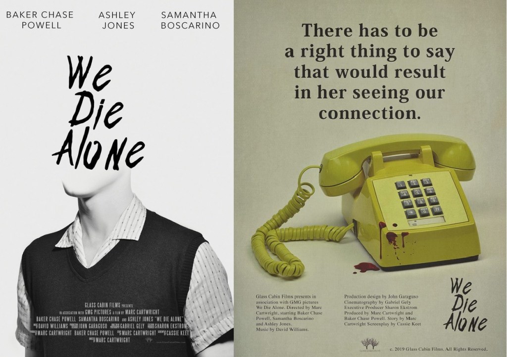 We Die Alone made its premiere at the Oscar-qualifying festivals LA Shorts and The Newport Beach Film Festival. It also picked up award wreaths at the Indie Memphis Film Festival (“Best After Dark Short”), iHorror Film Festival (“Best Director”), Shriekfest (“Best Thriller Short” and “Best Actor” for Baker Chase Powell), Filmquest (“Best Horror Short” and “Best Supporting Actress” for Ashley Jones), Crimson Screen Film Festival (“Best Actor” for Powell), Nightmares Film Fest (Powell, “Best Actor,” natch), and finally, GenreBlast (“Best Short Film”). Most recently, the Deep in the Heart Film Festival in Waco, Texas, granted three award nods to the film: Best Horror/Thriller Short, Best United States Short, and Best Performance for Baker Chase Powell. That festival streams from Waco on September 25 through 27 and October 2 through 4. Tickets are now on sale now at www.deepintheheartff.com.