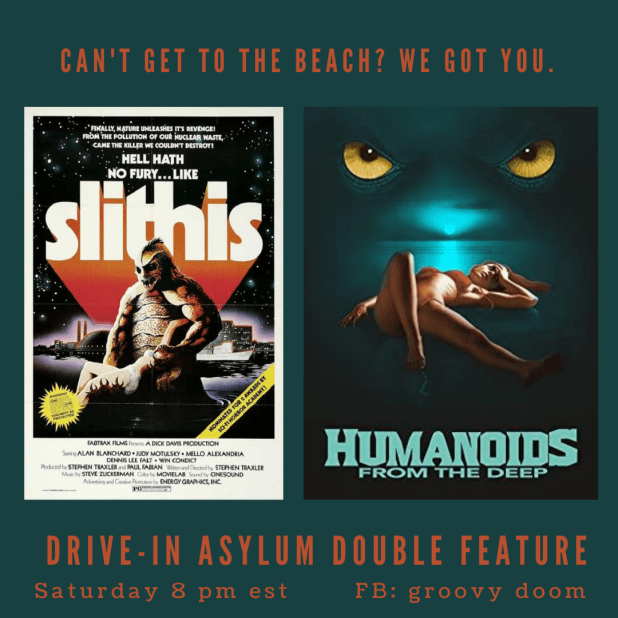 You may have had to cancel your vacation this year, but next Saturday at 8 PM on Groovy Doom‘s Facebook page, we’ll take you to the ocean with two brutal assaults on humanity. Up first, 1978’s Slithis!