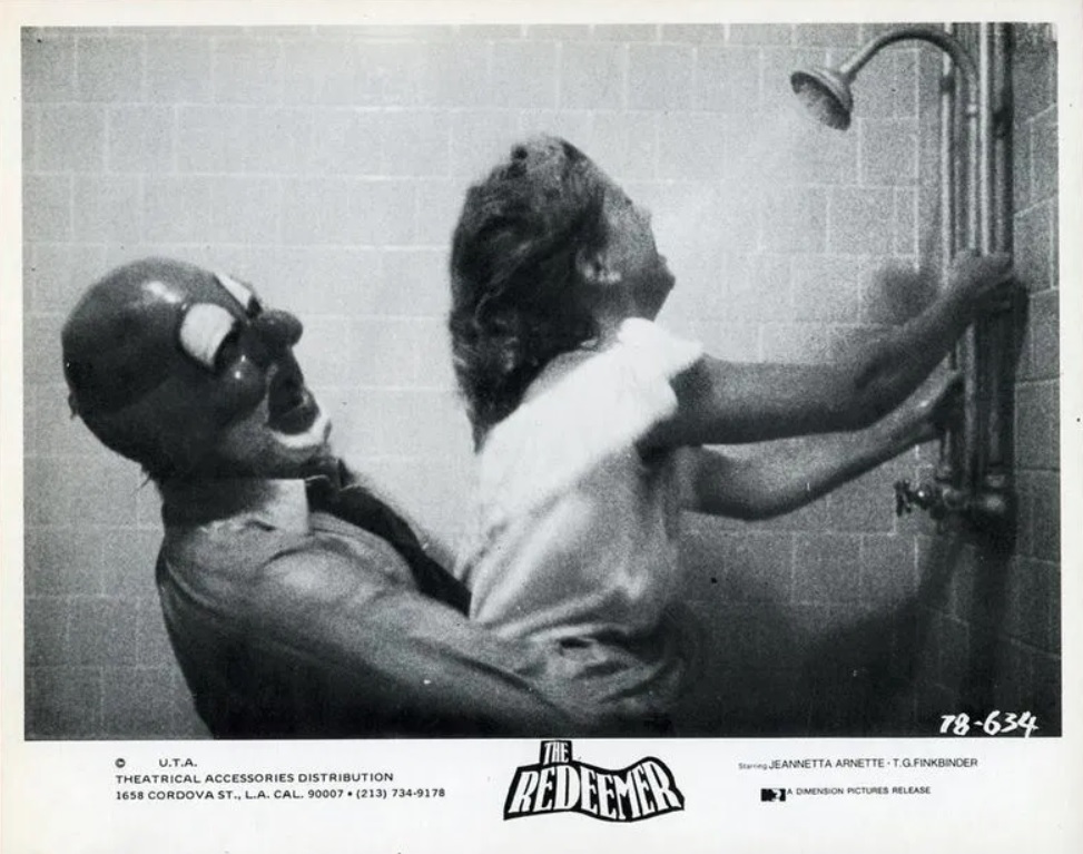 Now, do you see why the Phantasm analogy; for this more Coscarelli than Carpenter. Like J.H Hood from Ghoul Inc Productions—who once swore to himself that he’d never, ever watch The Redeemer again (for Bill Van Ryn of Drive-In Asylum is the true “Redeemer”)—pointed out during the September 5 Drive-In Asylum Double Feature Watch Party (Beyond the Door and The Redeemer): You go into this thinking . . . okay, this is another pseudo-slasher, light parody like Slaughter High (1986) . . . and you end up with a flame thrower totin’ clown roasting a guy’s meat and two veggies, and, as Sammy Panico pointed out: a sink drowning (that couldn’t have been Jeannetta Arnette; it had to be a body double-stunt actress) that goes on way, way, way too long. In the end, you can’t get a handle on where it’s all is going—and there’s not even a space gate or Tallman morphing into the Lady in Lavender or flying Chinese cuisinart harmony balls to leave you scratching your head.