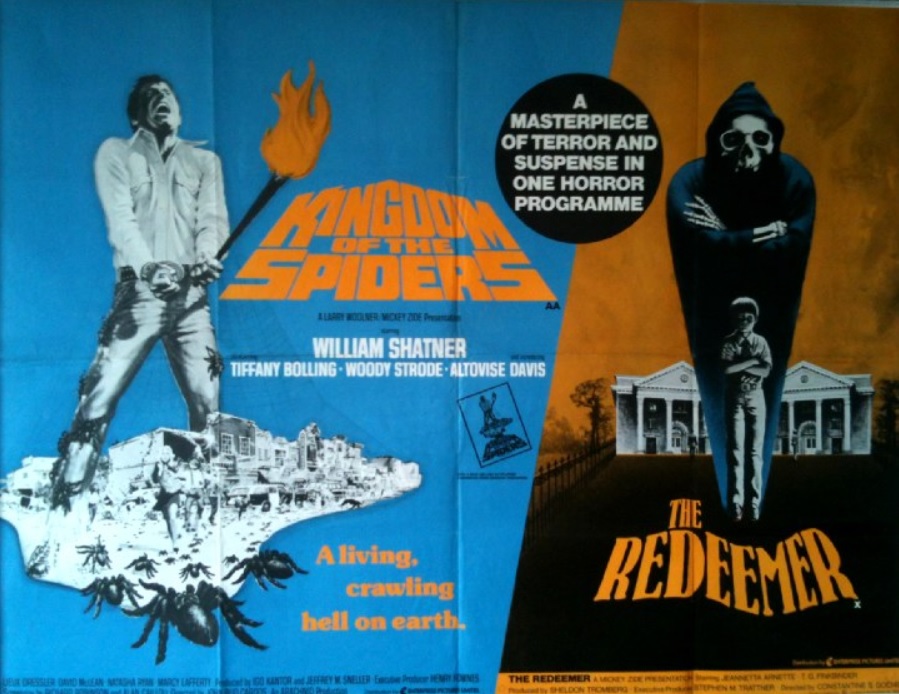 And here’s the film noir-cum-giallo plot twist: Halloween completed its twenty-day shoot over a four-week period in May 1978—The Redeemer was in the can, first. And the yellowed-cover turns again: expectations were low for John Carpenter’s˟* follow up to Assault on Precinct 13; aimed primarily at secondary markets (duplex theatres) and drive-ins, it quietly opened in Kansas City October 25, 1978. Meanwhile, halfway across the country in Los Angeles, The Redeemer opened—on October 25, 1978. During its drive-in run, ironically, The Redeemer played on the bottom half of double bills with Damien: Omen II (1978). (Phantasm premiered June 1, 1979.)