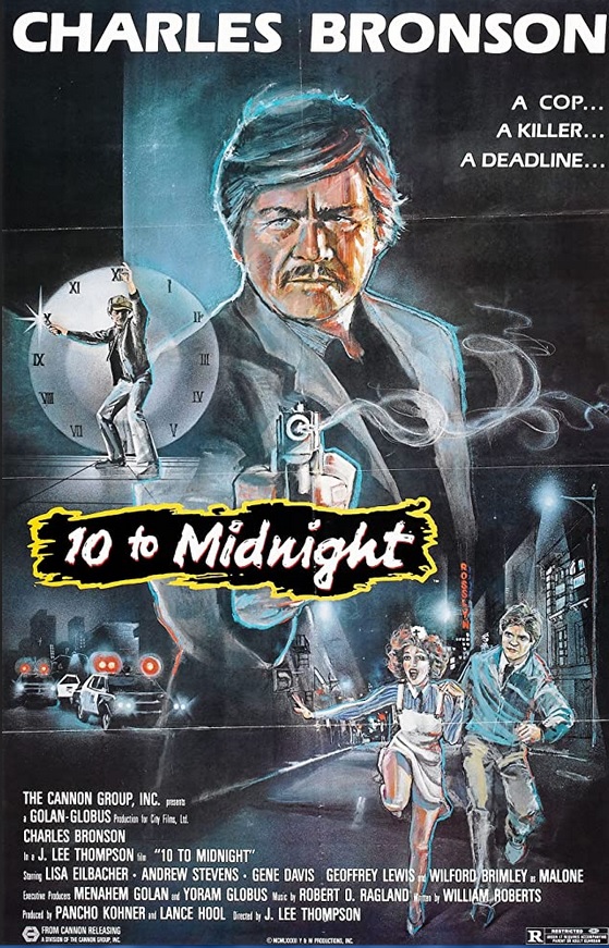 The roots of 10 to Midnight began with Cannon’s (initial) failed attempt to adapt R. Lance Hill’s novel The Evil That Men Do (1978), an action tale about an ex-assassin that comes out of retirement to avenge the death of a friend. During a “brainstorming session” at that year’s Cannes Film Festival, with Cannon still wanting to do a film with Bronson, came up with new project — 10 to Midnight. To sell the film, Golan did what he did best: the ol’ Hollywood shuffle, selling a film filled with “action, danger, and revenge” — but no script. And the buyers bought it. Now, they need a script.