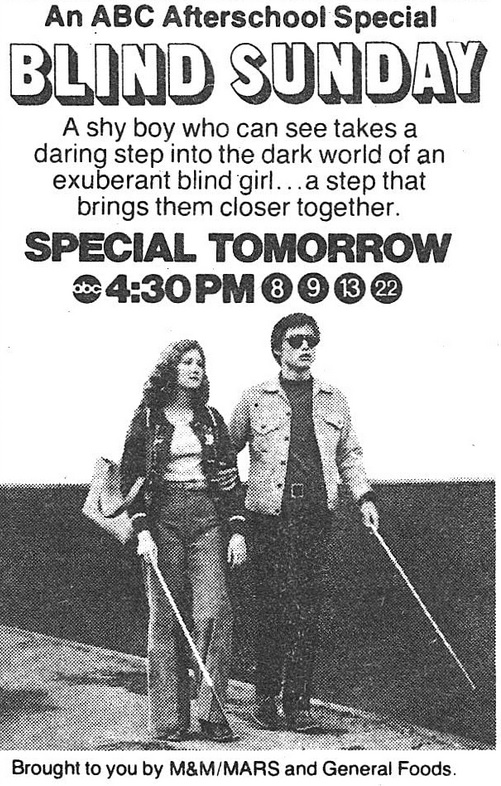 I remember Blind Sunday — as with most of these young adult network TV movies (via reruns into the mid-80s) — as if it was yesterday (thanks to my McCloskey fandom*˟). But wouldn’t you know it: with all of the various network teen flicks uploaded, there’s not a copy of Blind Sunday to share. But we did find this nifty You Tube playlist of other ABC Afterschool Specials to enjoy. Ah, but get this! We also found a clip from 2014 of Debi singing at a Brady Bunch convention . . . and she’s BLONDE!