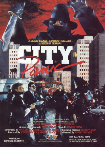 City In Panic has a poster that looks like a giallo — well, it’s not as gorgeously designed as a traditional Italian poster, but the killer sure looks like he stepped off the set of a movie made in 1973 with an animal-based title — and makes the AIDS crisis a major part of its story, which is pretty woke for 1986. That said, it’s filled with so many homophobic moments and slurs that this will be the last time that I say that this movie has anything to do with being culturally sensitive*.