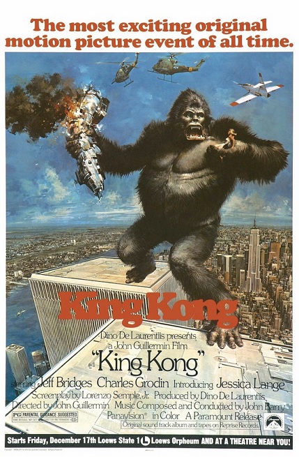 No, Godzilla nor Megalon — as did not King Kong in 1976 — ended up on top of the World Trade Center — at least not like in the theatrical one-sheets. You think I would know better after being bamboozled by the theatrical one-sheets for Yog – Monster from Space (1971) — with a giant space octopus clutching the Earth in its tentacles.
