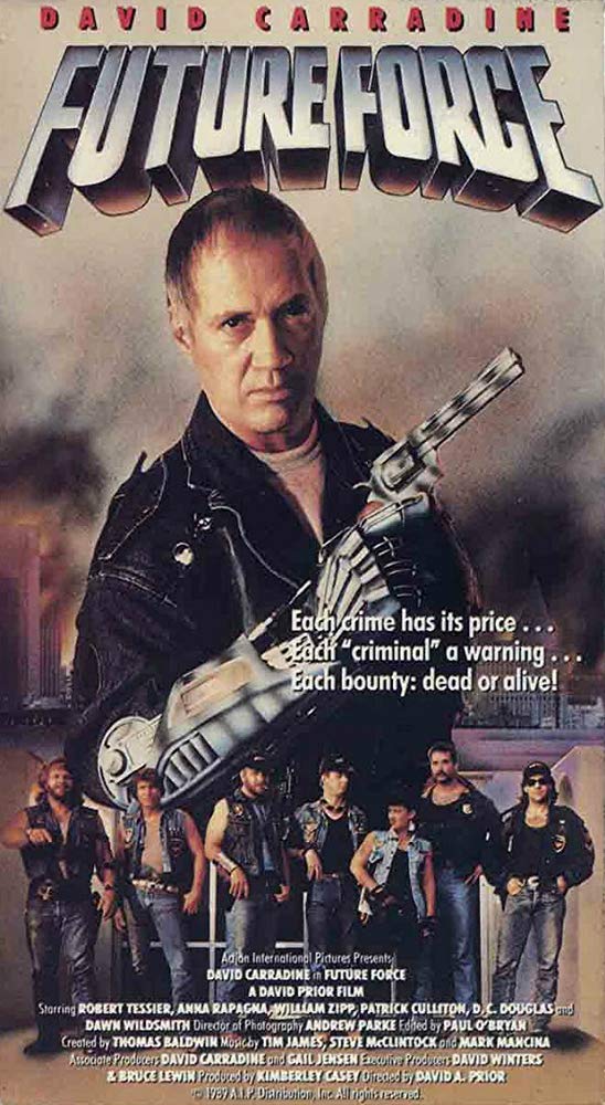 You’ve got four chances to tough out the John Tucker-verse: Tubi offers the RiffTrax’s versions of Future Force and Future Zone. If you’re a purist — like moi — you can watch the un-riffed VHS rips on You Tube for Future Force and Future Zone. And no, while David Carradine stars in the similarly-titled Crime Zone, that’s a whole other zone unto itself — courtesy of Roger Corman’s Concorde Productions. The same goes for Carradine’s brush with Cirio H. Santiago in Kill Zone from 1993.