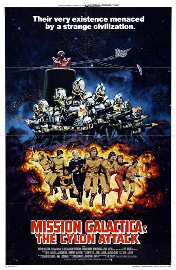 Sadly, unless you’re able to track down any VHS taped-from-TV or VHS home video repacks (foreign or domestic), these telefilms are lost to the cathode ray snows of yore. Fans of the original series have been clamoring for DVD and Blu-ray box sets of these movies for years, myself as well, as I’ve only seen half of them as result of discovering their used VHS-versions years after the fact. As for Mission Galactica: The Cylon Attack: we found four extended scenes (one in German) on You Tube (posted below) from the film for you to enjoy that gives the story arc from beginning to end.