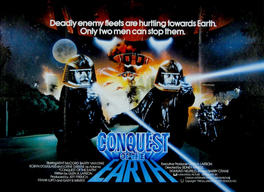 And speaking of the series-cancelled-and-returned second season Galactica: 1980: Our overseas brethren known the three-part “Galactica Discovers Earth” pilot as the third, official Battlestar Galactica film, Conquest of the Earth (1980), aka Galactica III, in some Euro-countries, Japan, and Australia.