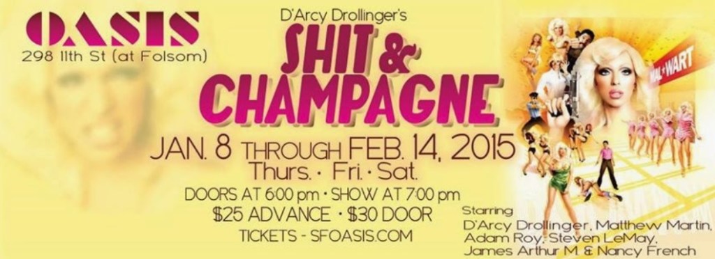 Practicing his craft with a series of campy stage productions at The Oasis, a famed San Francisco alt-lifestyle nightclub that he owns and operates, Drollinger (who’s portrayed Frank-N-Furter in productions of the Rocky Horror Show) takes those stage-steps to its ultimate, theatrical destiny as the writer, director and star of S**t & Champagne. During interviews, Dollinger describes his labor of love as “dragsploitation” and name-checks Pam Grier’s Foxy Brown and Linda Blair’s Savage Streets, along with the Zucker Brothers’ slapstick comedy films, as well as the ’70s TV series Wonder Woman and The Bionic Woman as his inspiration.