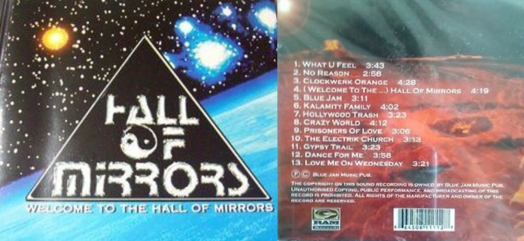 His “band,” Hall of Mirrors, issued a lone album through Hall’s own vanity impress, RAM Recordings. Welcome to the Hall of Mirrors, a 1999 studio project, features thirteen tracks that Hall wrote, sang, and produced — and played all the guitars, bass, and drums. Guest assisting him in the studio was former Guns N’ Roses guitarist Gilby Clarke (who put out a pretty cool glam-pop album with Candy, Whatever Happened to Fun; sound like sloppy-polished the Replacements, then there’s the harder-edged Kills For Thrills) and Prince’s former keyboardist, Tommy Barbarell.