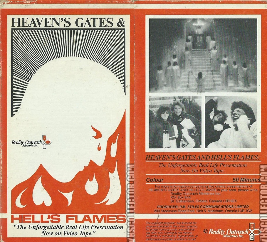 So . . . this 50-minute Canuck Christploiter made in St. Catharine’s, Ontario by Reality Outreach Ministries portrays people of various ages and walks of life who die in a variety of unexpected ways (e.g., drug abuse, the bottle, car accidents, muggings-gone-bad, steel girders falling). The way they lived on Earth determines where they will spend eternity: Heaven or Hell.