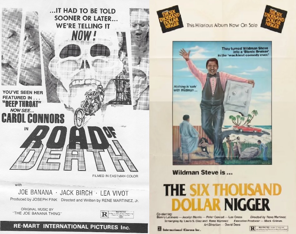 Rene Martinez, Jr. only made three blaxsploitation films, but wow, what a VHS-rental trio they were: his debut, the bike-slanted Road of Death (1973; okay, so that’s not exactly blaxploiting), and his final effort, The Six Thousand Dollar Ni**er (1978) — which aka’d as the less offensive, Super Soul Brother, and even Black Superman. Each are equally inept in all of their flubbed lines, mumbled to staccato-SHOUTED thepsin’, bad sound, exposed mic booms, clumsy soft-core sex, and Rudy Ray Moore-styled fighting awfulness: which is just how we like our blaxploitation romps to roll. You dig?