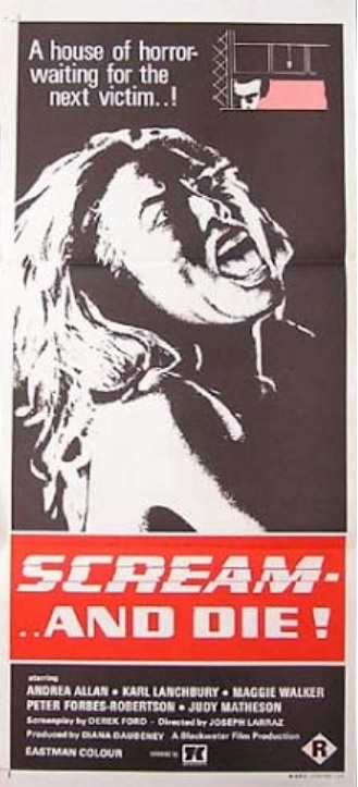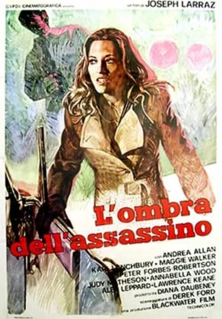 To start off this review, I’ve opted to use the Italian theatrical one-sheet — the title translates as the effective and logical, The Shadow of the Murderer — that gives this fourth film by Spanish writer and director José Ramón Larraz a decidedly giallo feel, but it’s not. Yeah, we are back to that ol’ “it’s not a giallo” debate that applies to Larraz’s directorial debut, 1970’s Whirlpool, and his 1971 follow up, Deviation — both considered Hitchcockian erotic thrillers (rife with lesbianism, natch) that lean towards the bloodless psychological. That debate continues with what I believe to be the quintessential Larraz production: his more subtle, restrained sixth production, Symptoms (1974). Courtesy of its lesbian subtext, it was Larraz’s seventh film, the Spanish-British co-produced Vampyres (1974), that became his best known, most successful film.