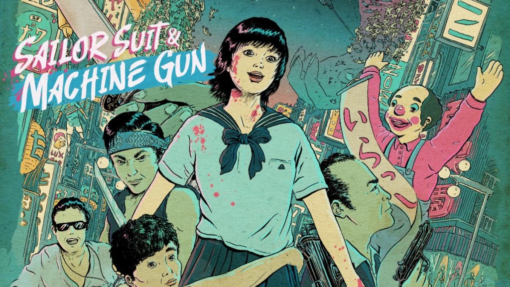 The Arrow Video Sailor Suit and Machine Gun blu ray has both the original theatrical version and the 1982 complete version (kanpeki-ban) re-issue of the film, restored by Kadokawa Pictures from a 4K scan of the original negative. Plus, there’s a new documentary Girls, Guns and Gangsters: Shinji Somai & Sailor Suit & Machine Gun, trailers and TV spots, and a sleeve with original and newly commissioned artwork by Michael Lomon. The first pressing comes with an illustrated collector’s booklet featuring new writing on the film by Aaron Gerow and Alex Zahlten, and a discussion between the film’s star Hiroko Yakushimaru and acclaimed director Kiyoshi Kurosawa, who was an assistant on the film.