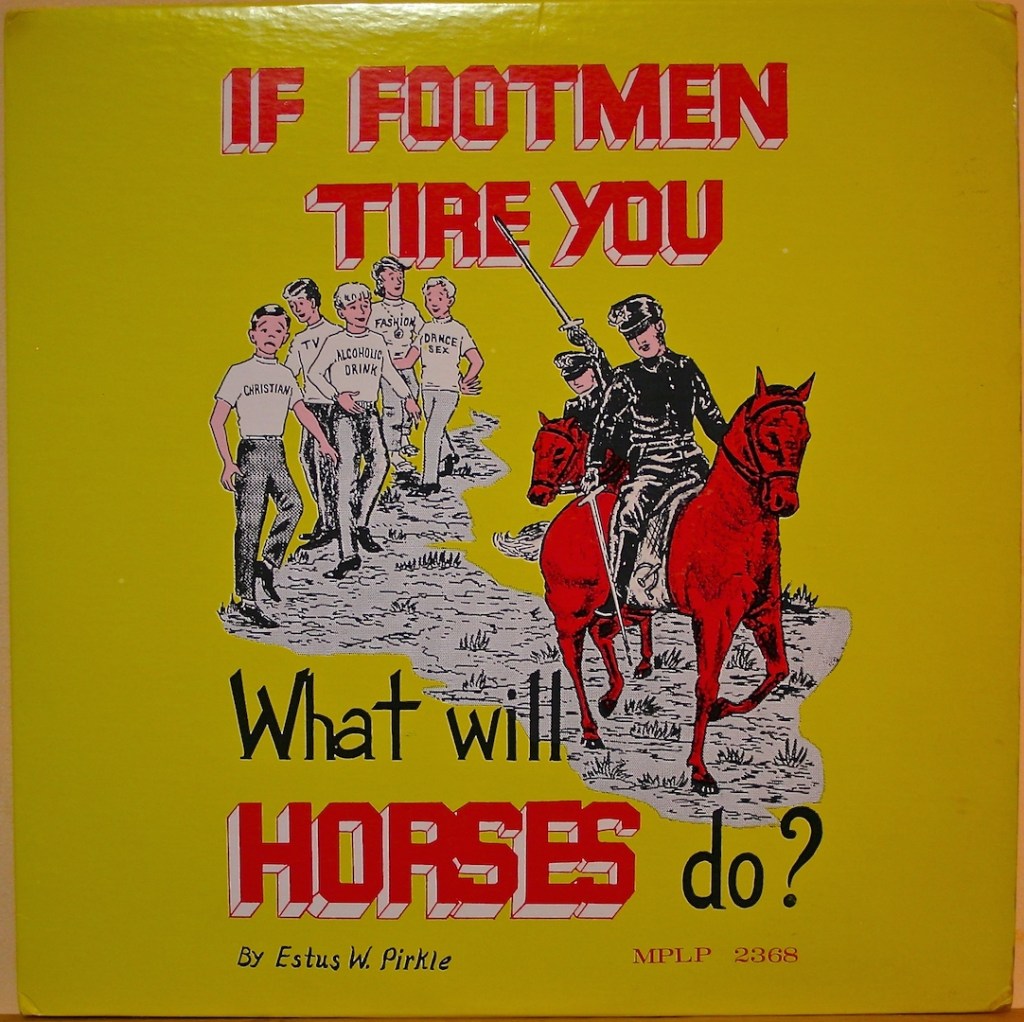 If you were unfortunate enough during your middle-to-high school life subjected to 16-mm shorts regarding drugs, vandalism, and teen pregnancy during social sciences and civics classes (which also played in private schools), that’s what we have here: the same slanted, low-budget drive-in styled production values, only as a pastor’s sermon unfurls with docudrama reenactments of his message. Footmen‘s production came about after Westerns and exploitation drive-in purveyor Ron Ormond survived a single-engine plan crash; upon “finding God,” he woke to the literal, fire and brimstone teachings of Mississippi pastor Estus Pirkle. Together, they’d make three films; Ormond, with other pastors, made a half dozen faith-based films, in total.