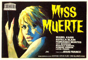 This movie is also called Miss Muerte, which is a great title, and it’s about Dr. Irma Zimmer, the daughter of Dr. Orloff’s student Professor Zimmer, who has made a machine that can make people into zombies. Four of the old man’s colleagues led him to an early death, so Dr. Irma uses the machine to control the firecracker sexual force that is Miss Muerte (Estella Blain), whose chief weapon is her poison-tipped fingernails, cuticles which she’s using to kill anyone connected with the death of Irma’s father.