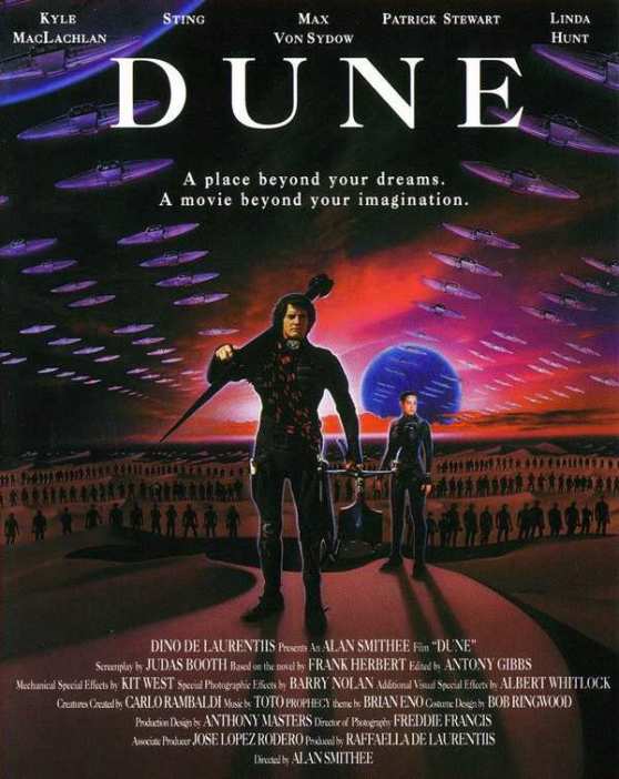 Dune (1984): David Lynch refuses to have anything to do with this movie. A television version was aired in 1988 that replaced the opening monologue with a much longer description of the setting that used concept art stills. Lynch disavowed this version and used Alan Smithee as his credit. For the extended and television versions, Lynch used the credit Judas Booth — a combination of Judas Iscariot and John Wilkes Booth — for his screenwriting credit.