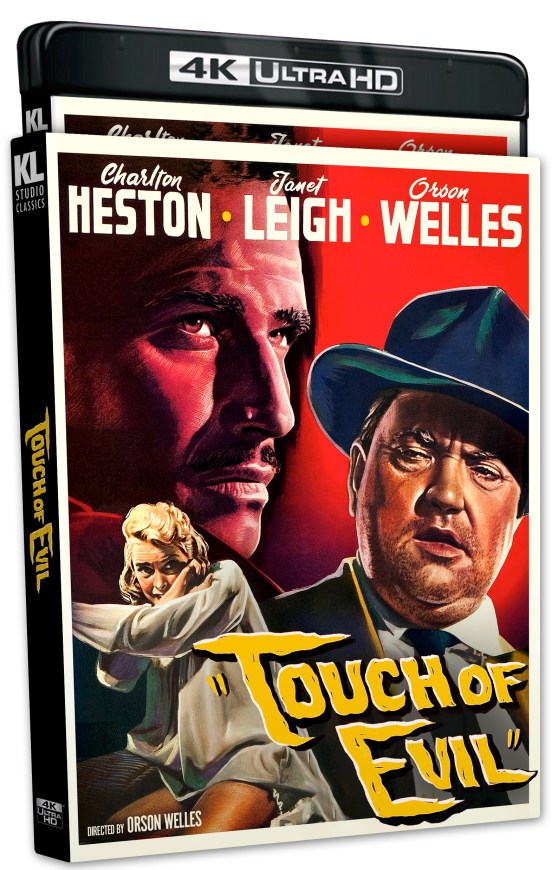 Kino Lorber’s blu ray release of Touch of Evil has brand new 4K restorations of the theatrical (with one commentary track by Tim Lucas and another by F.X. Feeney), reconstruction (with one commentary track by Imogen Sara Smith and another with Charlton Heston, Janet Leigh and reconstruction Producer Rick Schmidlin) and preview cuts (with commentary by Jonathan Rosenbaum and James Naremore) of the movie. There are also two featurettes, Evil Lost and Found and Bringing Evil to Life, plus the trailer. You can purchase it from Kino Lorber.