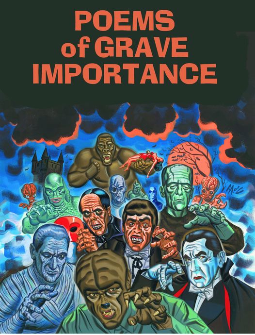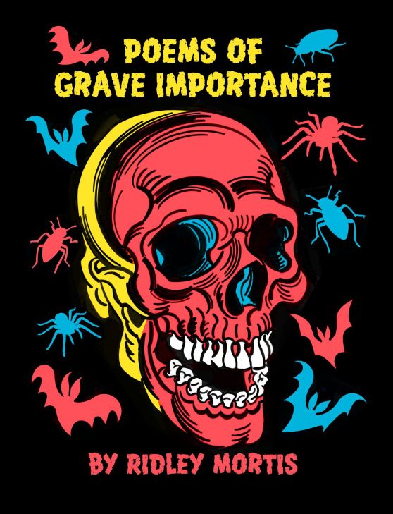 Ridley Mortis has a new book of horror poems and limericks to delight and disgust your whole skeleton crew of fiendish friends or rotten relatives. The book is called Poems of Grave Importance and it’s chock full of horror poems in the spirit of ghastly greats like Edgar Allen Poe, Charles Addams, H.P. Lovecraft, and Edward Gorey.