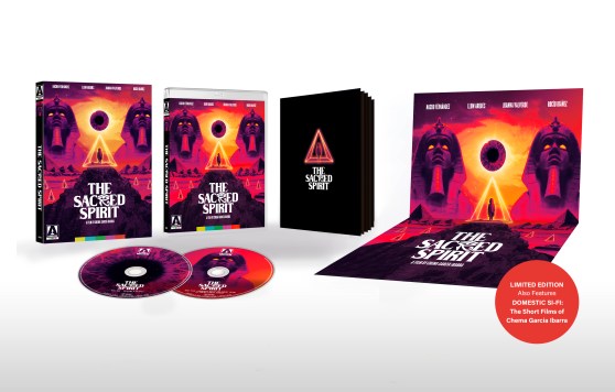 The set also includes Beyond the Eye of Horus, a visual essay about the use of surveillance and Egyptology in The Sacred Spirit by Alexandra Heller-Nicholas; Pyramid Scheme, a visual essay examining conspiracy, class and capitalism in The Sacred Spirit by Josh Nelson; Domestic Science Fiction, an interview with writer-director Chema Garcia Ibarra; four behind the scenes featurettes; Elche Vision, a series of six location reports about the making of the film, hosted by actress Lorena Iglesias in character as Esther Armengol, presenter of The Sacred Spirit’s fictional local TV show; promotional videos in which the characters of The Sacred Spirit talk about themselves; uncut background television broadcasts shot especially for the film and presented here in full; an image gallery and theatrical trailers. You can order this set from MVD.