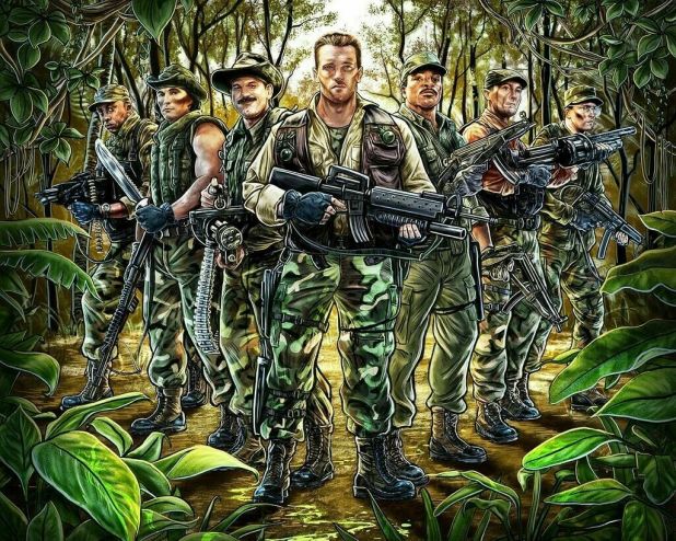 As Little Richard’s “Long Tall Sally” blares, helicopters carrying Dutch (Arnold Schwarzenegger), Poncho (Richard Chaves), Billy (Sonny Landham), Mac (Bill Duke), Hawkins (Shane Black), Blain (Jesse Ventura) and Dillon (Carl Weathers) lands in Central America to free a foreign cabinet minister and his aide.