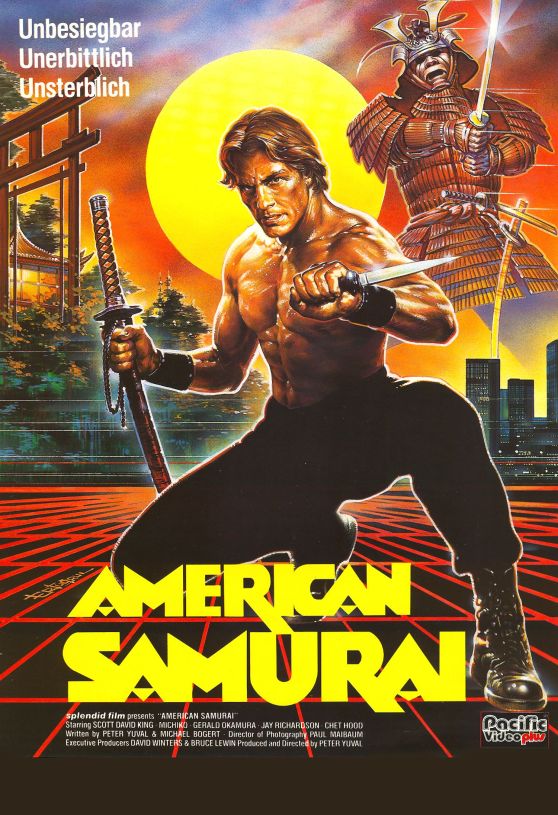 Actually, this movie takes a lot of inspiration from American Ninja. Andrew Collins (David Bradley, who took over in the American Ninja 3: Blood Hunt) is the only survivor of a plane crash in the Japanese mountains, which is how he gets raised by samurai master Tatsuya Sanga (John Fujiyoka, who fulfills the same role as Shinyuki in American Ninja). Along with Tatsuya’s son Kenjiro (Mark Dacascos, who beyond being the American Chairman on Iron Chef is amazing in everything he has done), he studies the fighting skills of the samurai and surpasses his new stepbrother. He’s given the family sword and that leads Kenjiro to renounce the samurai and joins the Yakuza and swears that one day, he will destroy Andrew.