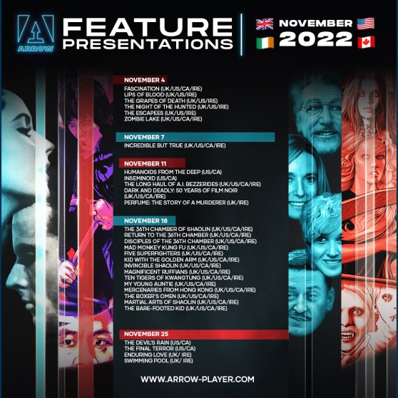 Arrow Player will have the following movies in November: