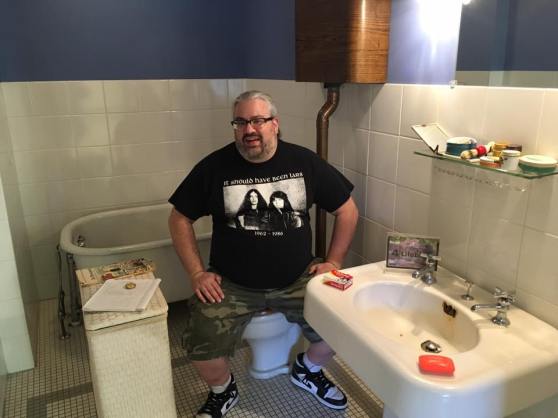 The author, about to get his mouth washed out with soap in the actual shooting location.