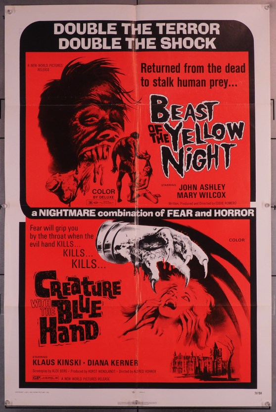 Based on the Edgar Wallace novel The Blue Hand and part of a long-running series of krimi adaptations by Rialto Film, this was bought by New World Pictures and issued as a double feature in the U.S. with Beast of the Yellow Night. Man, how good was life then?