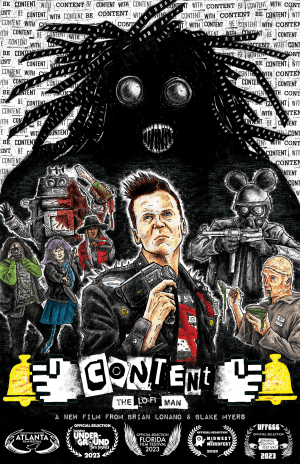Content: The Lo-Fi Man (2023): Brian Lonano, who co-directed this short with Blake Myers and wrote it, just wants to tell you about Tetsuo: The Iron Man. Yet he’s been replaced by the new and improved Brian Lonano (Clarke Williams) who is now a streaming content aggregator and influencer, asking you to smash that like button and ring the bell so you get the updates. Breaking free from the mouse-eared androids that have him locked up, he battles the Content Seeker by, well, kind of becoming Tetsuo and joining up with film revolutionaries Kino, B-Roll and Wild Track.