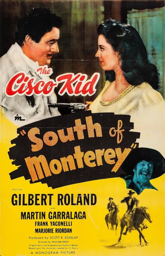 South of Monterey: Directed by William Nigh and written by Charles S. Belden, this time The Cisco Kid (Gilbert Roland) learns that Commandante Arturo (Martin Garralaga) and Bennet, a tax collector (Harry Woods), are stealing land from the poor. Can he play them against one another and return the land to the people who really deserve to live there?