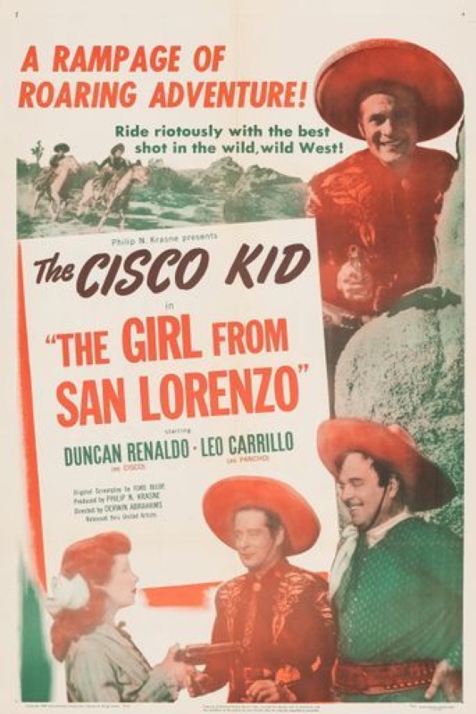 The Girl from San Lorenzo: Cisco (Duncan Renaldo) and Pancho (Leo Carrillo) have to prove their innocence after robberies made by two thugs (David Sharpe and Edmund Cobb) who look just like them. Our heroic dup gets jailed, but the outlaws have one more big score and need to free Cisco and Pancho to have an alibi.