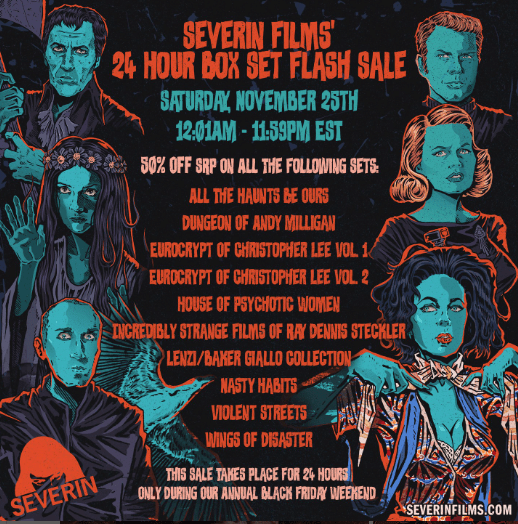 Look, just throw your paycheck to Severin and they’ll take care of your movies for you. The sale starts at midnight tomorrow.