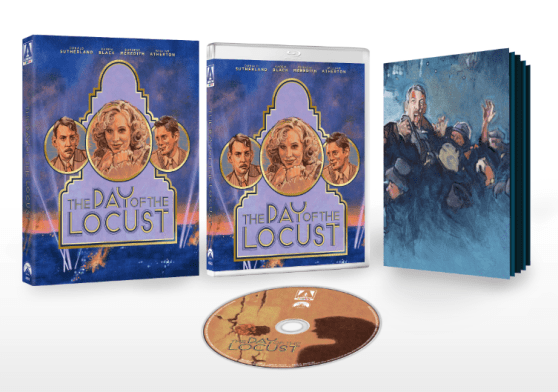 The Arrow Video blu ray of The Day of the Locust has a brand new 2K remaster by Arrow Films from the original negative. Extras include a new oral history audio commentary conducted by writer and film historian Lee Gambin, featuring assistant directors Leslie Asplund and Charles Ziarko, production associate Michael Childers, actors Grainger Hines and Pepe Serna among others; an appreciation of the film by critic Glenn Kenny; a discussion with film historian Elissa Rose; a visual essay on the film’s themes with Gambin and behind the scenes image galleries. It comes inside a reversible sleeve featuring original and newly commissioned artwork by Colin Murdoch and has an illustrated collector’s booklet featuring new writing on the film by Pamela Hutchinson. You can get it from MVD.